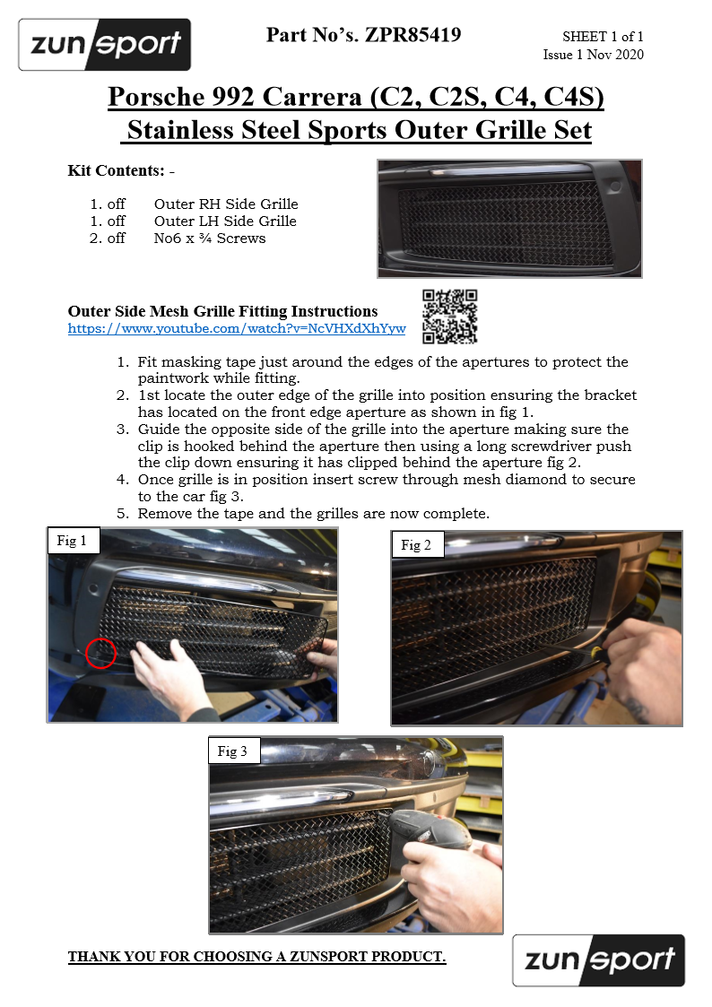In addition to being simple to fit, the Zunsport grille sets you see here are made utilising extensive specialist experience and industry knowledge, as well as the highest quality materials.