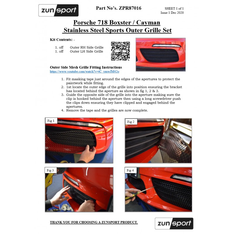 Searching for an easy to install grille set that will blend with the original design of your Porsche 718 Boxster And Cayman – Outer Grille Set seamlessly? Then look no further than an . Using stainless steel woven wire mesh, premium quality comes as standard and all Zunsport grilles are guaranteed for the life of your car.